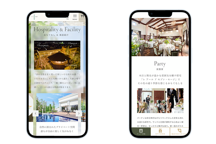 水・緑・光をふんだんにとりいれたゲストハウスは、清らかな水など自然をイメージしたデザインに。それを邪魔しない柔らかな色合い、フォントの文字を使用し、写真を最大限美しく魅せることを意識しました。
