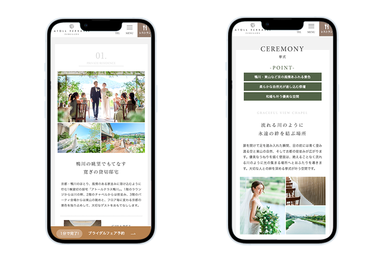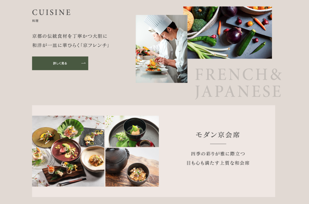和の趣を取り入れつつも過度に和に寄せず、モダンなゲストハウスとしての居心地の良さを表現。鴨川の自然と京都の文化を感じられる上質な空間を、視覚的に伝えるサイト構成を意識しました。